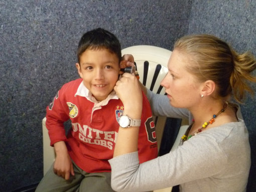 Die Audiometrie ist auf dem Gelände des Kinderheims untergebracht. Deutsche freiwillige Hörgeräteakustiker und eine peruanische Mitarbeiterin führen dort Hörtests bei Kindern und Erwachsenen durch und passen Hörgeräte an, die aus deutschen Spenden stammen und so auch für bedürftige Patienten erschwinglich sind.